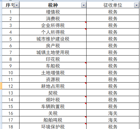 目前,在我国现行的有18个税种,具体如下: